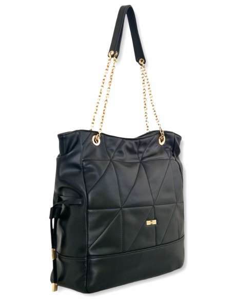 Mala Primadona com textura acolchoada em padrão diamante. As alças de corrente douradas não só complementam o design com um brilho subtil, como também oferecem durabilidade. Com um interior espaçoso e bolsos laterais. É o acessório perfeito para a mulher que valoriza a qualidade, o design e a funcionalidade em todas as suas escolhas. Ideal para um passeio casual, um evento formal ou um dia de trabalho.