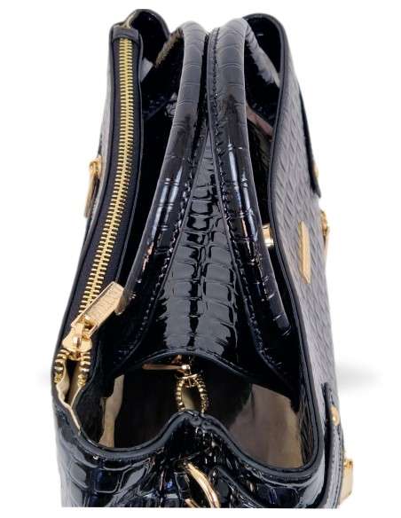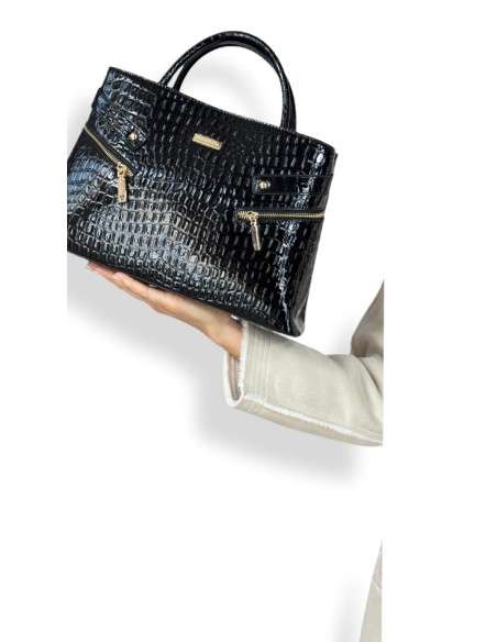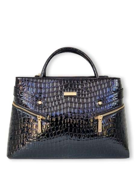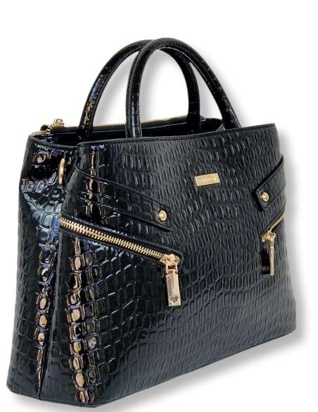 A combinação perfeita de estilo e funcionalidade para o seu dia a dia. Confeccionada em pele sintética croco de qualidade, com design elegante e organização inteligente. Possui duas alças de mão e uma alça a tiracolo ajustável e removível. O seu interior é dividido em quatro secções, sendo duas delas com fecho de correr, garantindo que os seus pertences fiquem sempre organizados e seguros. Disponível nas cores clássicas preto, camel e granada adapta-se a qualquer estilo.