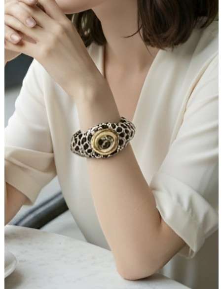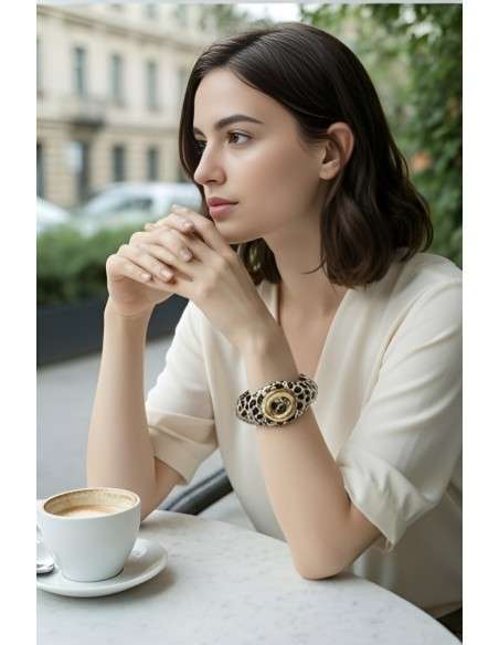 Estas pulseiras são perfeitas para quem procura um acessório com atitude. Com um design moderno e curvilíneo, apresentam um anel dourado que as torna ainda mais especiais. A estrutura de acrílico confere-lhes um brilho único e uma sensação de leveza no pulso, ideal para qualquer ocasião.